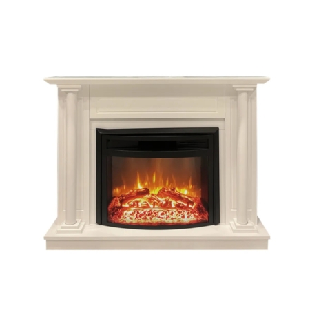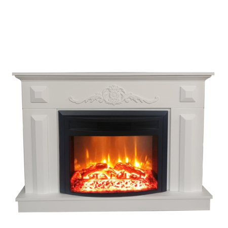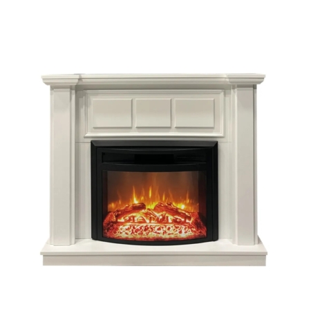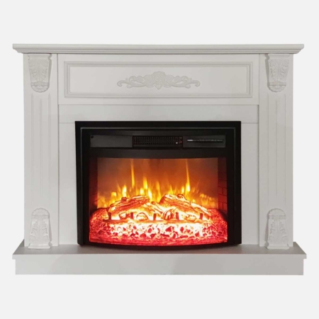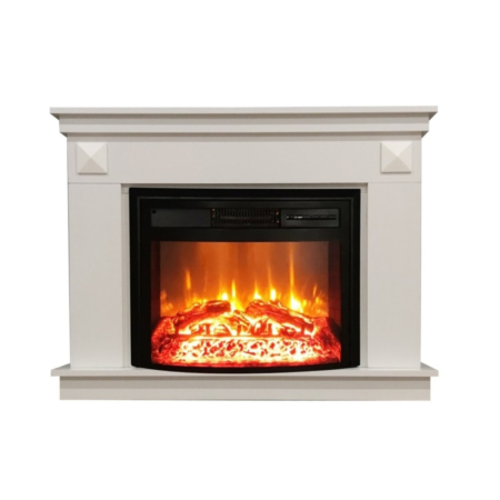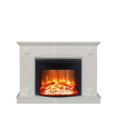 A sophisticated and elegant electric fireplace featuring a white lacquer-painted
