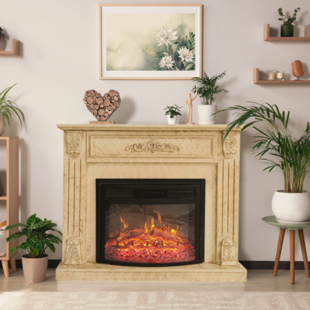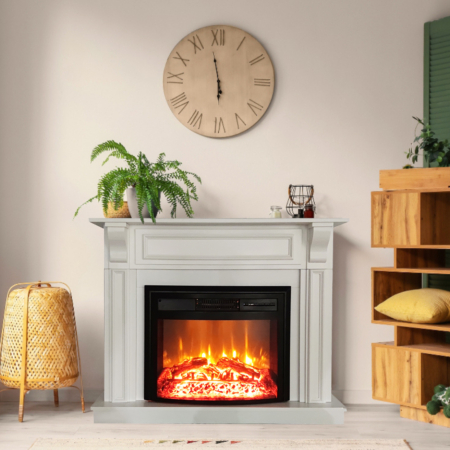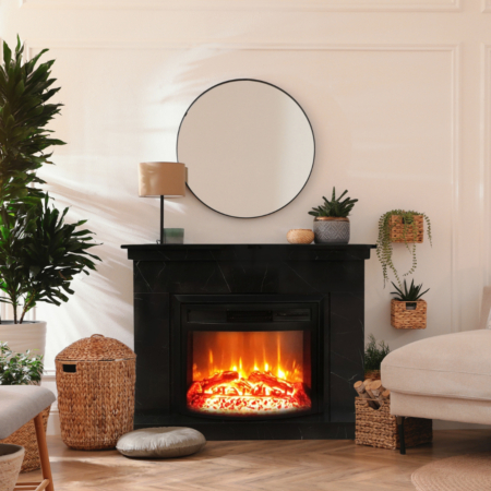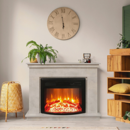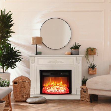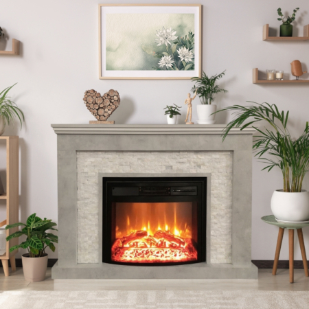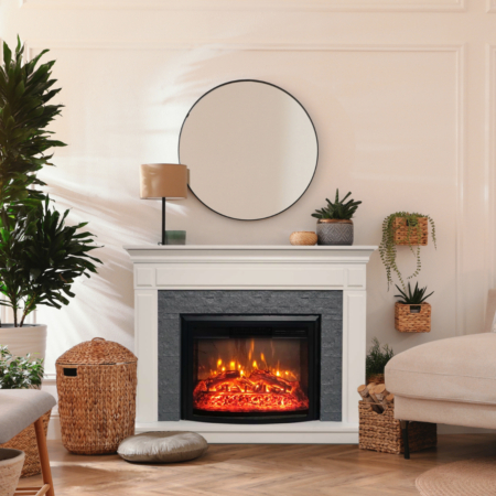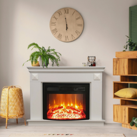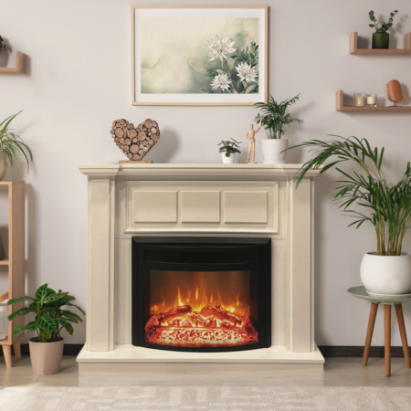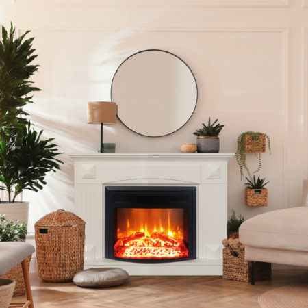 A sophisticated and modern electric fireplace featuring an MDF outer