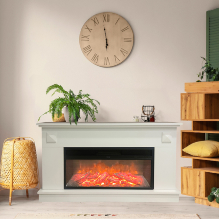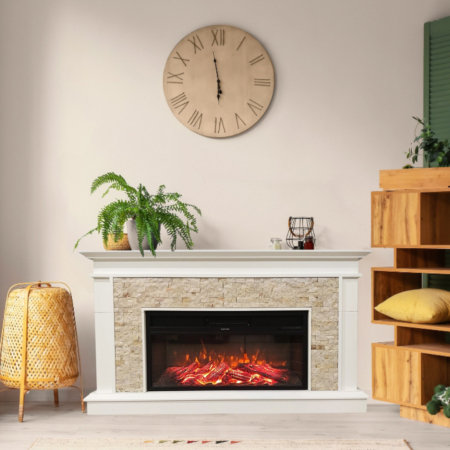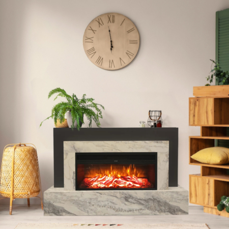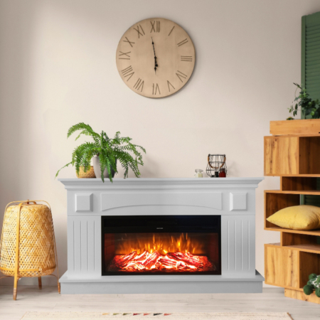 A modern and luxurious electric fireplace featuring an MDF exterior
