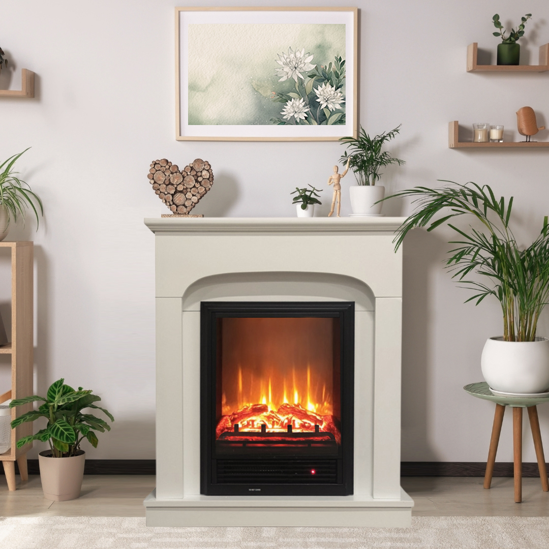 A sleek and modern electric fireplace with a white lacquer-painted MDF exterior, designed to add warmth and elegance to any space. Featuring remote control operation, an adjustable LED flame effect, and a two-stage heating system (750W/1600W), it offers both style and functionality. With dimensions of 30 cm (depth) x 82 cm (width) x 96 cm (height) and a weight of 33 KG, this fireplace efficiently heats up to 16 m², making it a stylish and practical addition to contemporary interiors.
